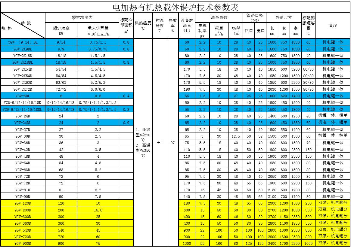 YGW系列電加熱有機熱載體鍋爐(俗稱油加熱器)是一種以有機熱載體為傳熱介質,以冷卻水(軟化水)或空氣為換熱降溫介質,采用電加熱升溫,通過熱油泵強制循環(huán)的供熱和調溫設備。